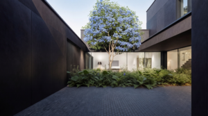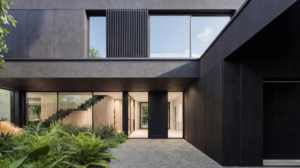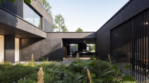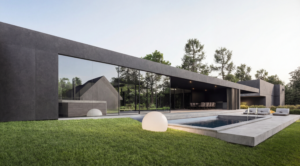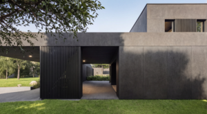 Bryła została zaprojektowana tak, by nie epatować formą, tylko pracować proporcją i detalem. Ciemna, jednolita kolorystyka oraz trwałe, minimalistyczne wykończenia budują estetykę quiet luxury: luksus dyskretny, wynikający z jakości, a nie z nadmiaru.